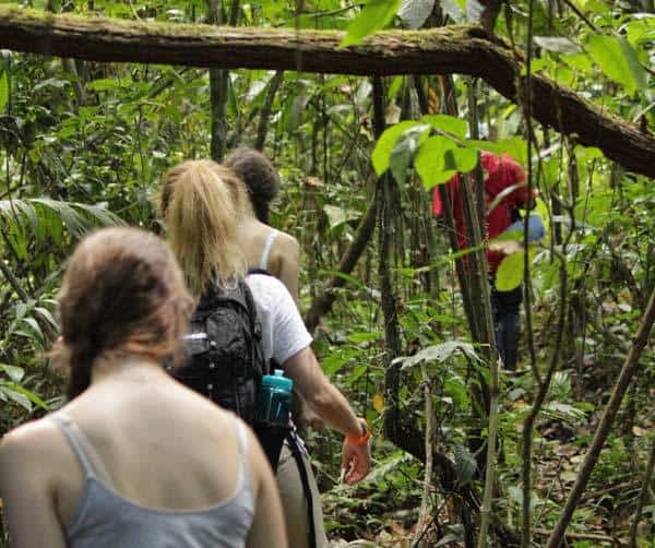 In any of the National Parks and private parks, you are not permitted to wander off the trail, as that creates ecological damage. This style of hiking is usually 2-5 hours and travels in a loop. Along the way, there will be sign posted points of interest. The type of animals you will see is determined by how many people are using the same trails, and how quiet you can stand while waiting. Some National Parks allow camping in regulated camping areas accessible by car. None of the National Parks allow real exploration for jungle camping in pristine wilderness.