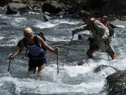 Some of the more interesting hikes Serendipity Adventures offers as part of your holiday are on reserves, both through Indigenous lands and national reserves (as opposed to National Parks). This style of hiking in Costa Rica follows trails used by native people, or by animals (believe it or not, big cats follow the same route followed by people since it is the easiest route). When our local guide tells us “it’s two hours hike from here” he means about five hours for non-natives. Even our very guides find it impossible to keep up with the local leader, a real trailblazer. Fortunately, we can slow up the leader in front of us by asking, politely, to whack the trail clear with the machete. These hikes are rugged, often slippery, and with dramatic terrain, flora, and fauna. There will be fewer animals on this style hike than in the National Parks, because even though there are fewer people, there’s a lot of noise whacking with machetes!